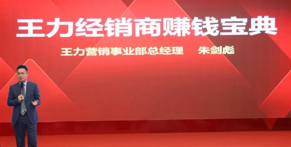 随后,王力事业部总经理朱剑彪分享《王力经销商赚钱宝典》。朱总表示,2021年王力品牌销量增长30%以上,对经销商的付出表示衷心感谢。他说,只有经销商赚钱,公司才会有更好地发展,公司任何部门的职责,任何产品的研发,任何机制的制定都是为了更好地服务和支持经销商,让经销商更赚钱。同时解读了公司“432千亿战略”目标,全面分析了公司10大竞争力。其中经销商股权激励,可以为经销商带来巨大的利润回报。同时,公司通过战略、家装业务、电商流量、代言人广告、店面渠道、各种培训、产品直营、服务承诺、政策支持等9大赋能,助力全国经销商更好地发展。特别是对多位优秀经销商的成功销售案例分析讲解,为大家提供了学习榜样,树立了自信。 朱总案例结合的精彩演讲,大家受益匪浅,赢得了阵阵掌声。