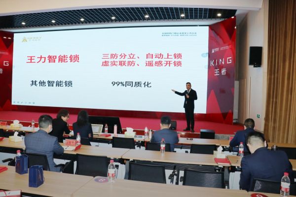 王力智能锁事业部总经理余建丰讲述了《王力智能锁—2022年业绩倍增》。他首先分析了当前中国智能锁市场行情和发展趋势,分享了王力智能锁与众不同的四大优势:三防分立、自动上锁、虚实联防、遥感开锁。他说,这些优势就是对消费者更有利的独有卖点,是经销商挣钱的终极法宝。谈到销售,余总表示,你缺什么,公司给你补什么,只要你要挣钱,公司给你配要素。在售后服务方面,提供2年保修,终身维修;7×24小时热线咨询,24小时快速响应机制,节假日照常服务;售前、售中、售后提供质量保证全程跟踪;建立客户档案管理,实现客户定期回访,聆听用户意见;以客户需求为起点,以客户的满意为终点。不仅让客户满意,更让客户感动!