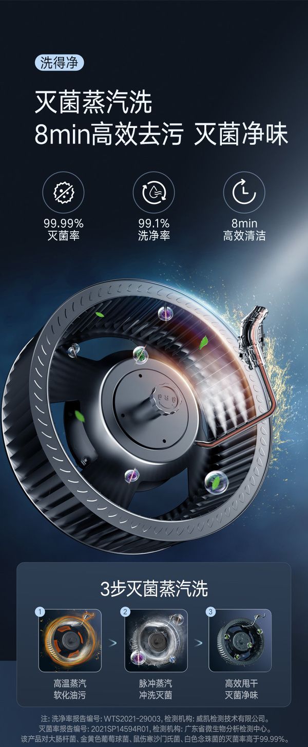 美的旗舰新品LS5再次亮出绝招,升级版变频灭菌蒸汽洗,通过高温蒸汽软化油污、脉冲蒸汽冲洗灭菌、高效甩干灭菌净味三步,以及6分钟涡轮增压蒸汽自动喷洗+2分钟高速风干,只需8分钟就能实现洗净率99.1%,灭菌率99.9%的自清洗功效。速度之快,效率之高,不得不让人直呼专业!
