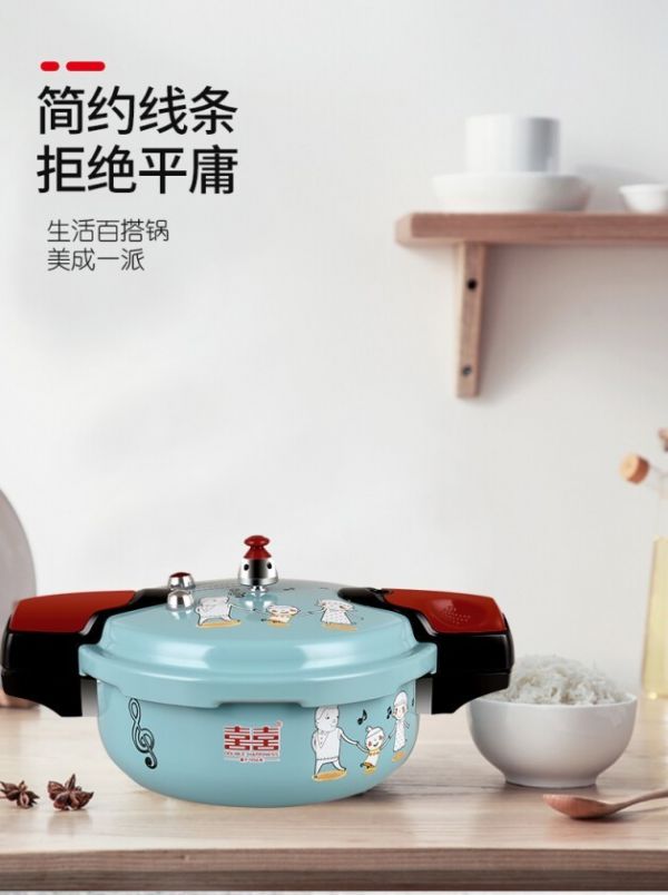 毫不夸张地说,这款微压锅算得上厨房的颜值小担当。外观上,它身上穿着浅蓝色外衣,衣服上缝制着一家三口的卡通图案。把这款微压锅摆放在厨房里,仿佛是对未来一家三口生活的憧憬。