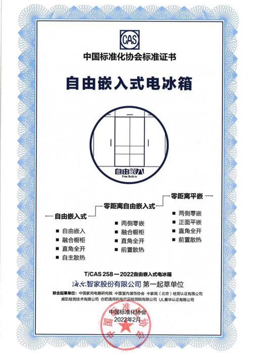 现在,冰箱与橱柜融合的标准空白被填补了。2月25日,在《自由嵌入式电冰箱》标准发布会上,海尔冰箱牵头,联合中国标准化协会、中国消费者协会、中国室内装饰协会、中国家用电器协会、中国家用电器研究院和UL美华认证有限公司等6大机构发布了全球首个《自由嵌入式电冰箱》标准,实现了从自由嵌入式到零距离自由嵌入式,再到零距离平嵌电冰箱的标准升级,引领家居一体化趋势。