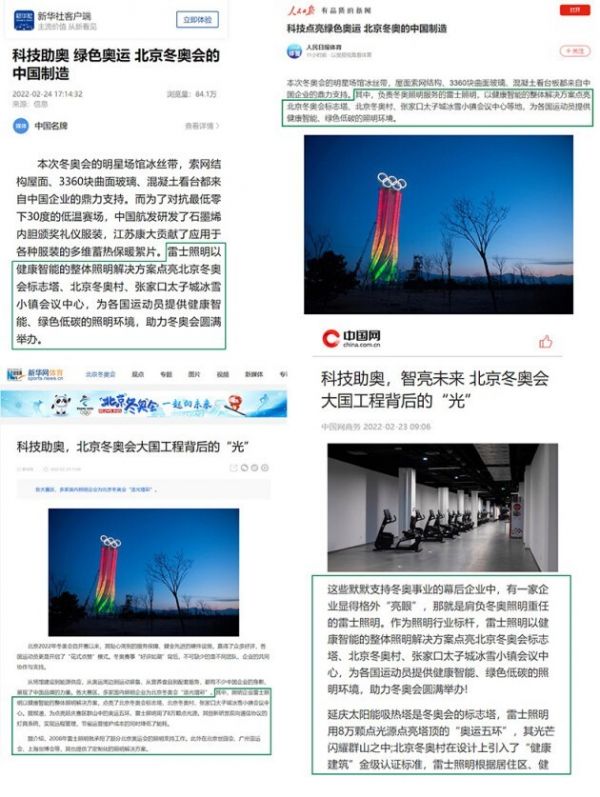 新华社表示:冬奥赛事“好评如潮”,背后是不同团队、企业共同协作与支持的力量。在众多的冬奥参与者中,多家央媒之所以会重点表扬雷士照明这样一家照明企业,是因为其在冬奥赛事中突出的表现和默默服务的精神,都堪称民族品牌的杰出代表。