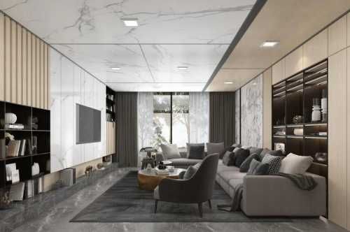在用圣菲雅全铝整装全铝大板装饰的现代客厅里,就非常适合这样的设计。整体的顶部设计延伸视野,让狭小空间在视觉上显得大气不压抑。