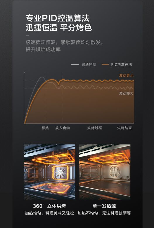 中国家庭厨房寸土寸金。美的Q5 Pro通过多功能整合集约厨房空间,真正实现“在功能上做加法,在空间上做减法”。美的Q5 Pro采用双泵速喷,强大蒸汽量快速锁鲜,140°C高温渗透蒸,留住食物营养与鲜嫩。在烤制功能上,美的Q5 Pro采用上下各双烤管加热,同时有背部热风将强大热量传递到内腔的各个角落,实现均匀烘烤;PID智能控温算法,控温精度可达±1℃,保持恒定温场,让每一处皆为理想温度。不仅如此,其创新搭载空气炸功能,360°循环包裹加热,逼出食物内部油脂,搭配专用空气炸篮,炸物均匀更酥脆。