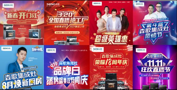 正是意识到任何媒介都有生命周期,森歌的品牌传播愈发趋向多元和丰富。除了锁定央视广告、户外高炮、高铁媒体等高势能媒介迅速占据大众视野,奠定品牌高端形象之外;森歌紧跟营销风口,结合当下年轻人喜闻乐见的娱乐方式,以热门综艺植入、电商直播、抖音话题打造、明星合作等新式传播“武器”,释放强大的流量红利,不断优化传播效率,放大品牌声量,更将理想厨房这一品牌IP最大化植入人心。
