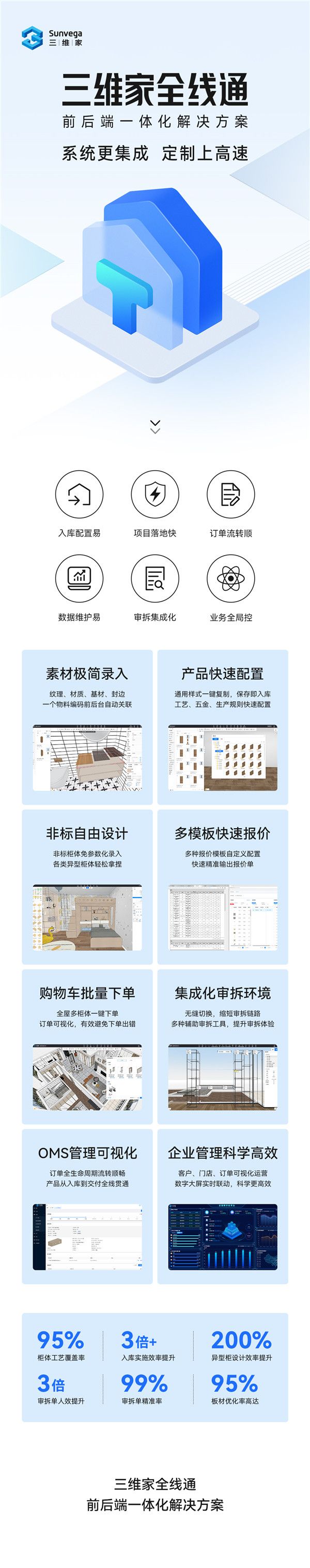 深耕家居产业9年,凭借对产业痛点的深刻认知,三维家认为前后端一体化才是破局之道。坚持钻研更快更稳的前后端一体化技术,三维家逐渐开发出建模、营销、导购以及生产等全链条的软件工具矩阵,赋能家居产业上下游。