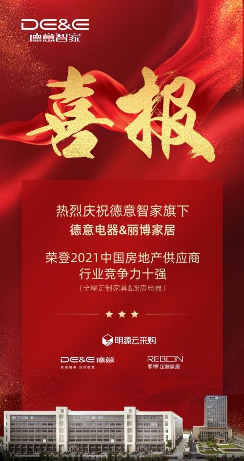 重磅揭晓!德意电器&丽博家居 荣登2021中国房地产供应商行业竞争力十强