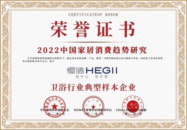 近日,由中国建筑材料流通协会指导,HOME家饰界、China Hadoop大数据、房天下联合主办的“2022中国家居消费趋势研究暨行业典型样本企业发布”成果在京发布,恒洁卫浴凭借出色的品牌影响力入选“卫浴行业典型样本企业”,并获得“2022消费者喜欢的卫浴品牌”称号。