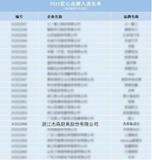 近日,由匠心计划办公室和纽约时报舆情中心联合主办的“2021匠心品牌”评选活动完美落幕,在将近300个企业共同参与的情况下,杰森集成灶成功入选并被收录至匠心品牌查询系统,成为官方认证的“匠心品牌”。