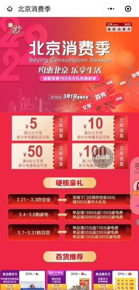 2022北京消费季3月1日全城开启啦!不知道小伙伴们都领到硬核福利了吗?