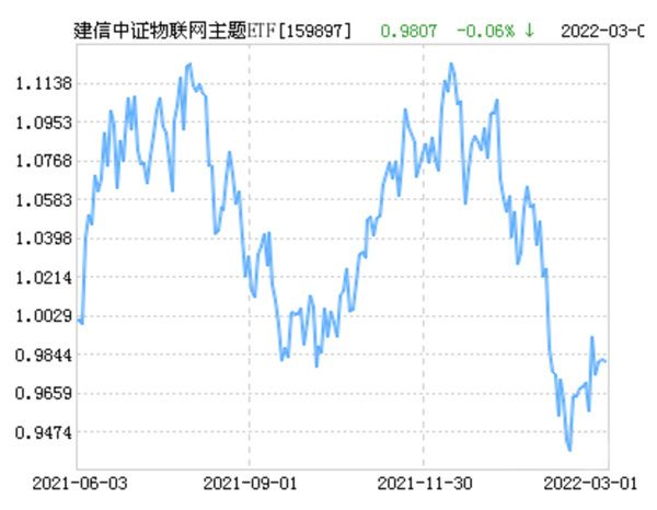 新浪家居智能频道讯 金融界基金03月03日讯 建信中证物联网主题ETF基金03月02日下跌1.33%,现价0.978元,成交20.64万元。当前本基金场外净值为0.9654元,环比上个交易日下跌1.56%,场内价格溢价率为-0.04%。