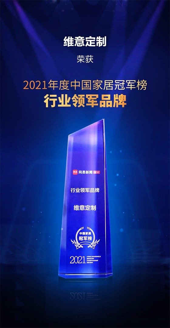 多年依赖,维意定制凭借一站式全屋配齐,让客户享受省钱、省心、省力的家装体验,用杰出的设计服务力量,突破产品同质化壁垒,打造了独特的品牌优势,荣获本次网易颁发的“2021中国家居冠军榜行业领军品牌”奖项。