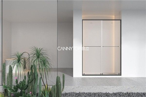 采用走下滑轮,上轨配毛条结构。不锈钢精铸滑轮主体,更经久耐用,造型结构简约、现代时尚;每个门配2组4滑轮,活动门可上下调节;联墙材为“凹”型结构,修正墙面误差。