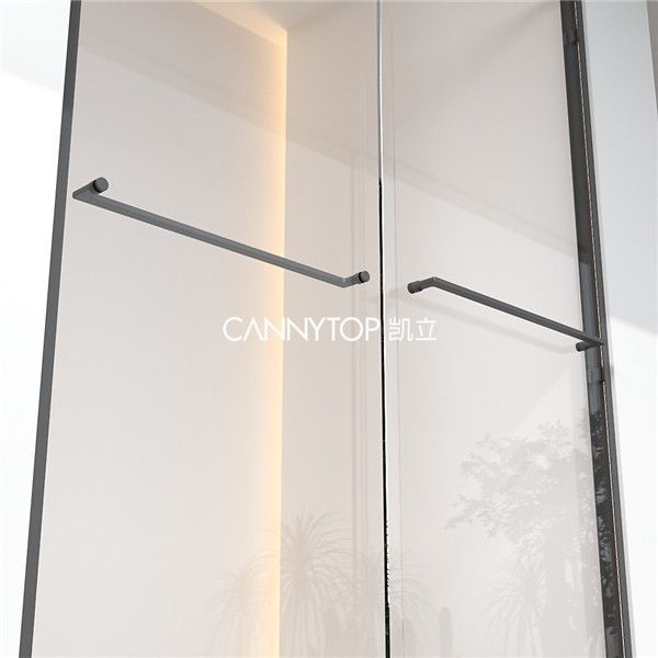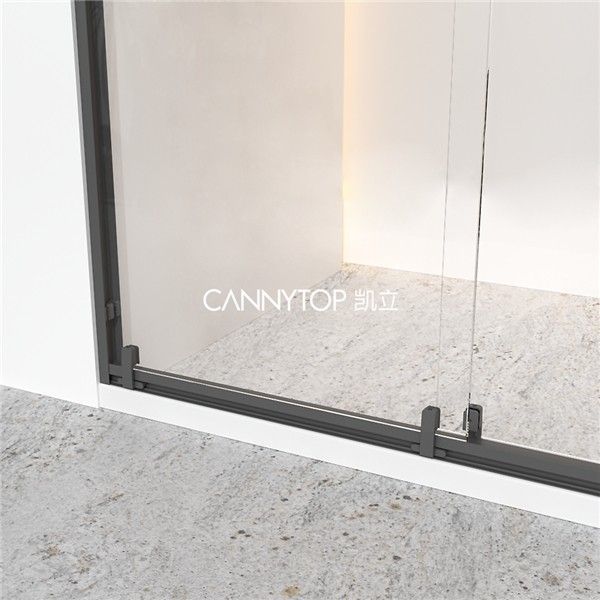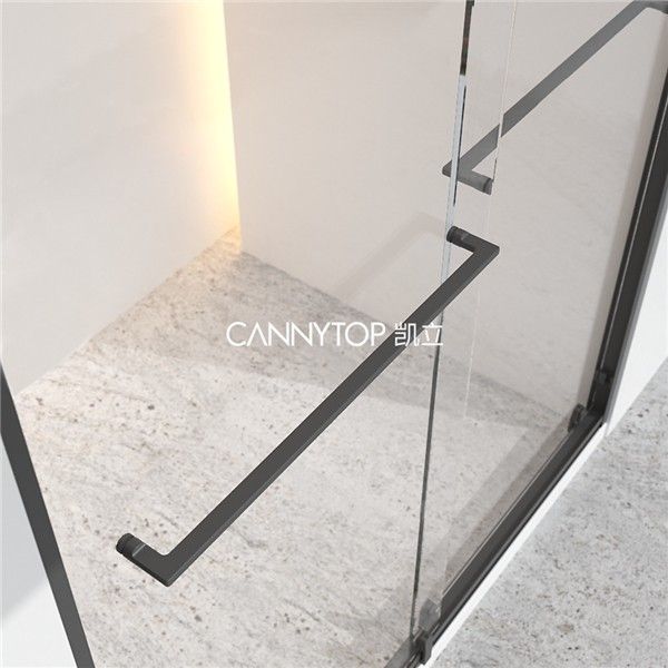 造型时尚的拉手,握感舒适,沉稳扎实;防撞块造型时尚,双卡扣式装卸,能有效减缓玻璃门对墙体的冲击,底轨2°的倾斜角度使排水更加快速,杜绝了底轨的返漏水,不易积水。