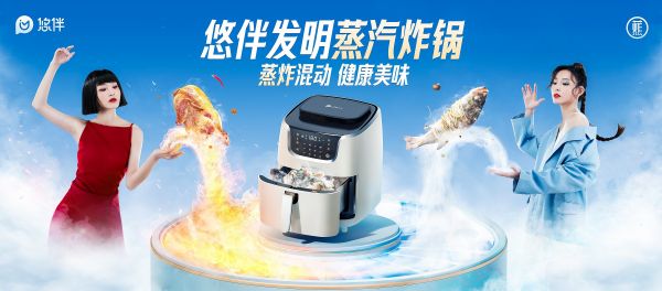 相比传统的空气炸锅或蒸箱,实用性更强,适用范围更广,使用效率更高。内置直喷蒸汽,不仅能烤、炸食物,还能保持食材的新鲜,真正达到外脆里嫩,鲜美多汁。在外观上,悠伴蒸汽炸锅采用智能触控面板,功能、状态一目了然,便捷操作。而对于厨电电器中的清洗痛点,悠伴蒸汽炸锅创新研发自清洗功能,一键清洗无异味,为消费者展现出了悠伴对提高品质生活的一贯坚持。