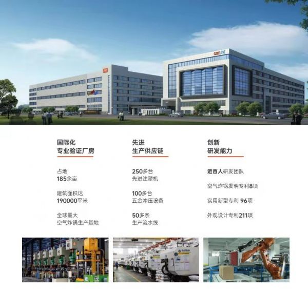 技术上的创新性,主要得益于悠伴母公司嘉乐智能科技股份有限公司强大的研发能力。嘉乐智能是目前全球最大的空气炸锅ODM制造基地,拥有300多项核心专利技术,连续7年全球销量优异,全球空气炸锅市场市场占有率35%以上,是全球最大的ODM空气炸锅制造基地,荣获“十三五”中国十大厨房小家电出口企业。