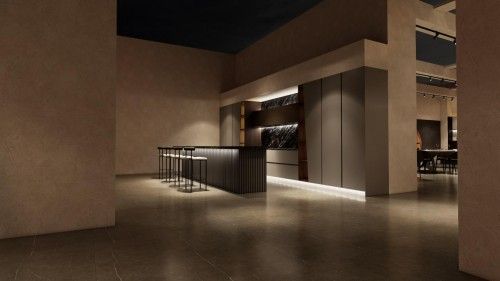 本次帝标参展主题为“大宅·寂美”,天然与高精度加工的材质历经碰撞与融合,共生出诧寂时尚的美感。天然温暖的材质,中和而大气,代表着帝标炽热不变的初心,冷峻的材质则彰显出潮酷时尚的生活态度,代表着帝标革新求变、追求卓越的奋斗目标。展位共设置布克区、鲁易区、巴赫区及公共区等四个区域,整体高水准的定制柜类产品融合质感十足的软体成品体现了帝标全屋整体配齐的特色优势。