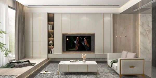 如果要在客厅做地台,那可以将客厅区域整体抬高,既明确空间功能,又打破了视觉上的单一感,再搭配家具、灯光,巧妙丰富客厅空间的视觉观感。