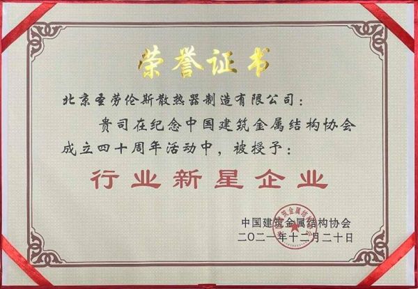 北京圣劳伦斯散热器制造有限公司及企业董事长杨刚先生榜上有名,荣获了“行业卓越企业家”、“抗洪模范单位”、“行业新星企业”、“扶贫模范单位”、“抗疫模范单位”共计五个企业及个人荣誉奖项。
