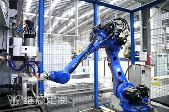 维意自研设计的“数字化智能钻孔机器人”,在行业内实现一次流程,自动加工板材5个面。同时能根据每块板材的身份信息,自动调整加工模式,实现任意尺寸、孔位、板面等参数要求,实现非标板材的批量加工,规避人工出错的智能制造。