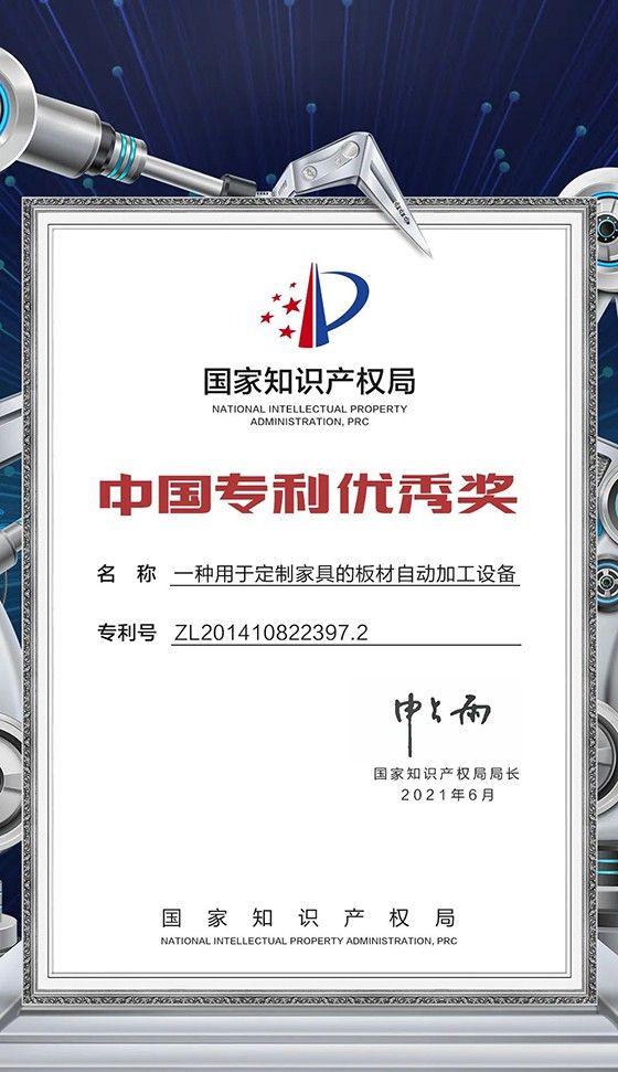 本次被嘉奖的中国专利优秀奖技术——一种用于定制家具的板材自动加工设备(专利号:ZL201410822397.2),就是维意技术团队破解当时传统加工方式无法“个性化产品实现规模生产”难题的有力创新之一。