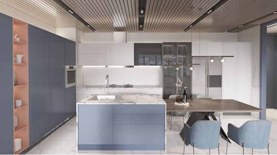 在快节奏的城市生活,饮食搭上了速食外卖的快车,质量却是难以保障,拥有一个可以轻松搞定各种美食的厨房,或许是在忙碌生活之余对自己极好的奖励。柏厨家居蓝调,考虑到现代城市生活中家庭的多样化饮食需求,合理配置了中西双厨设计。西厨区依托墙体做分类收纳,小家电和功能区泾渭分明,拿取有序,上班前可轻松搞定早餐;烤箱内嵌设计,旁边是厨房常用的高身拉篮,辅助烘焙用品的收纳,休息日的下午跟随教程做一个网红糕点,美食和快乐同时收获!中餐区的设计相较传统,依托户型做足收纳同时流畅厨房操作动线,减轻厨房过余劳动,让我们更多的精力都投入到享受烹饪和美食的过程。很长时间以来,厨房已经不再和女性捆绑,也不再是女性的专属空间,所以每一次的下厨都是对生活和家人的爱,每一份美食暖胃的同时也是对自己心的慰藉。