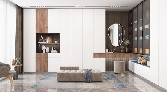 精致的妆容,得体的衣着,自信的OL们穿梭在城市之中,而她们的美丽可以都被收纳在一个不大也不小的衣帽间。柏厨家居云澜的衣帽间,将每一天都变成美一天,由玻璃幕墙打造的空间分隔给整个家居空间都增添了时尚感,而女神们手中的重要的武器——包包,成为这里的不二之主,兼具分隔和收纳,空间使用满分!因为半开放的空间设计,衣物的主要收纳区没有继续选择开发,但是由梳妆台作为分隔,搭配玻璃门板的若隐若现,整个空间又呈现出了另外一种灵动。而这里,收纳了你的通勤装也收纳了你春游的亲子衫,收纳了你的恨天高也收纳了舒服的运动鞋,不同的衣物可能说明了你在生活中不同的角色,但美丽永远是你自信的外衣!