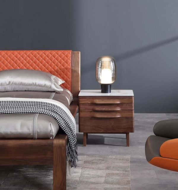 皮与木的结合在虽然在家居设计中屡见不鲜,但百强却在此之上别具匠心地添加了细微拉扣,凸显了床头的高级感。床边触手可及的床头柜融合了岩板与实木,带来卓尔不凡的触感体验,承载的是最真实的生活意趣。你会放些什么?或许是睡前的一本书,也或许是醒来的第一杯咖啡,也或许只是一盏昏黄的小夜灯,伴你安稳入睡,让心在一片安然舒适中着陆停靠。