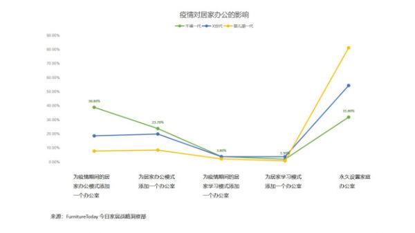 而另一份来自家居媒体(FurnitureToday今日家居)的消费者调查显示,在20岁~30岁左右的人群中,有近39%的人在家里增加了一间办公室,以应对疫情导致的混合及居家办公需求。