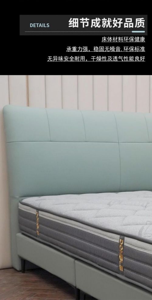 这款皮床的床体采用的是E1级环保木材,符合国家环保标准,健康安全无异味。