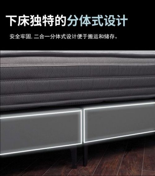 下床独特的分体式设计,不仅方便安装,而且使床架更加结实、牢固、耐用,为我们提供一个绿色环保、安静自然的睡眠环境