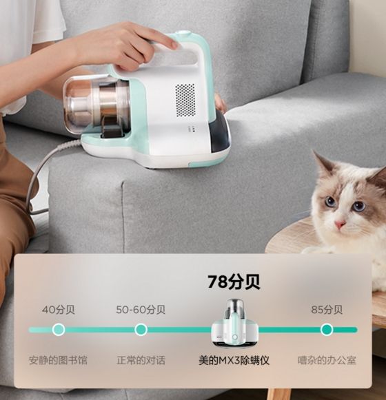 噪音是否过大,也是很多人选择除螨仪的顾虑点。美的除螨仪MX3采用多重降噪设计,将机器运转声音降低至78分贝,机器 运作时不会过于吵闹,大大提升使用感。