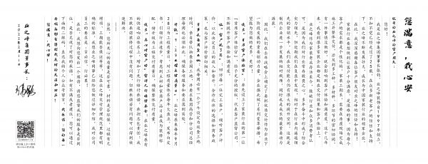 这一次,张钧又给客户写了一封信《您满意,我心安》,并在信中承诺:如有不满或者建议,所有消费者都可以通过二维码,直达张钧的个人公众号留言,每一条信息都会得到他及时的关注和回应!