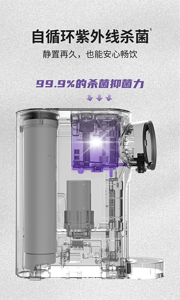 数据表明,一方水养一方人这句俗语具有科学性,水质与健康有必然的联系。将自来水接入储水箱,不用担心所在地区水质较差,一目智能净饮机将立即开启鲜活水程序,全天候UV杀菌,杜绝细菌滋生,确保饮水的安全。