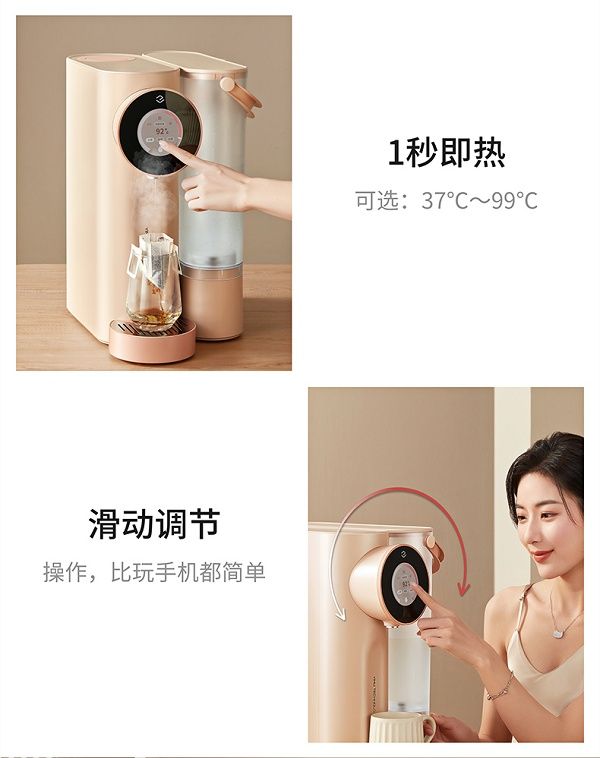 科学表明最佳饮水温度是38℃~45℃,这一温度最接近人体体温。传统温控总是需要进行度数加减,想要到达的度数动辄需要操作点击数十次。全新推出的二代将进行触动式操作控温,上下滑动灵活调节,1秒速热,1℃调温。