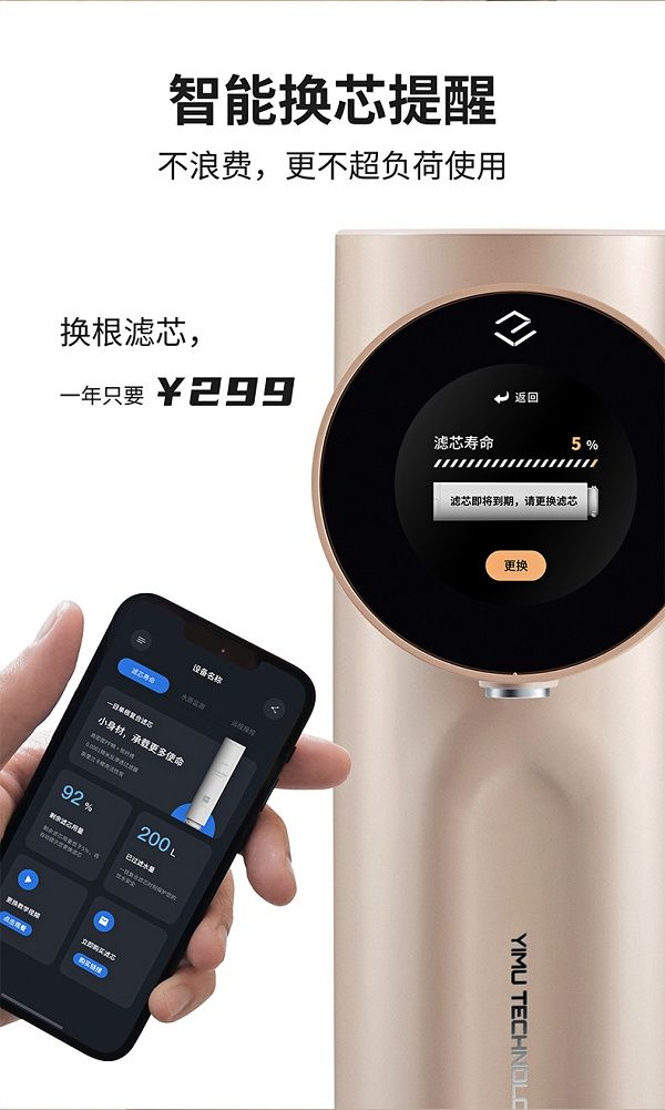 一目科技本次全新推出的净饮机将增加滤芯更换提示功能,科学检测滤芯变化,根据当地水质和过滤效果,动态计算滤芯寿命,既能够确保滤芯不超负荷使用,也不用担心未达到更换标准造成资源浪费。