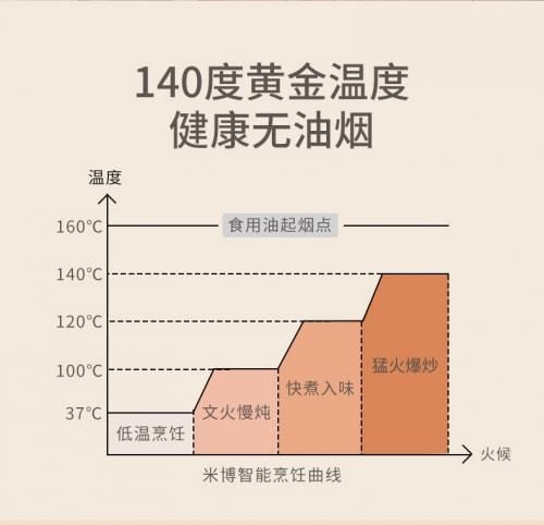 有人做饭喜欢爆炒,每次做菜油星四溅,灶台、地板、墙壁都是油腻腻的,油烟串得满屋子都是,关键是油烟对身体的伤害也很大。米博无油烟烹饪机器人将炒菜温度控制在140℃以内,保证菜品的色香味俱全的同时,不产生油烟,厨房只有饭香味没有油烟味,让烹饪者再也不用忍受厨房油烟困扰和危害,吃饭更加入味。