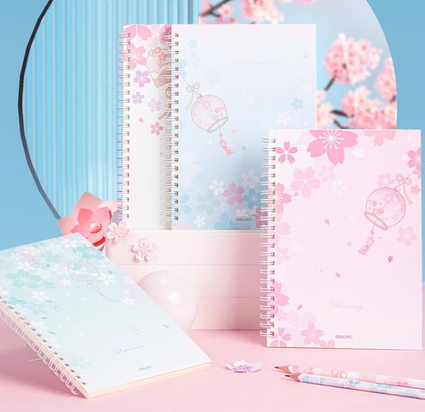 得力LA560螺旋笔记本的封面、封底,都设计了浪漫唯美的樱花元素,学习的紧张忧虑和对将来的兴奋展望,都能被这场春日樱花雨治愈。内页选用70g/㎡米黄品质纸张,厚度扎实柔和,双面书写不易渗透。双排线圈装订制成,稳定牢固,翻页灵活,在艺术与实用之间达到完美平衡。
