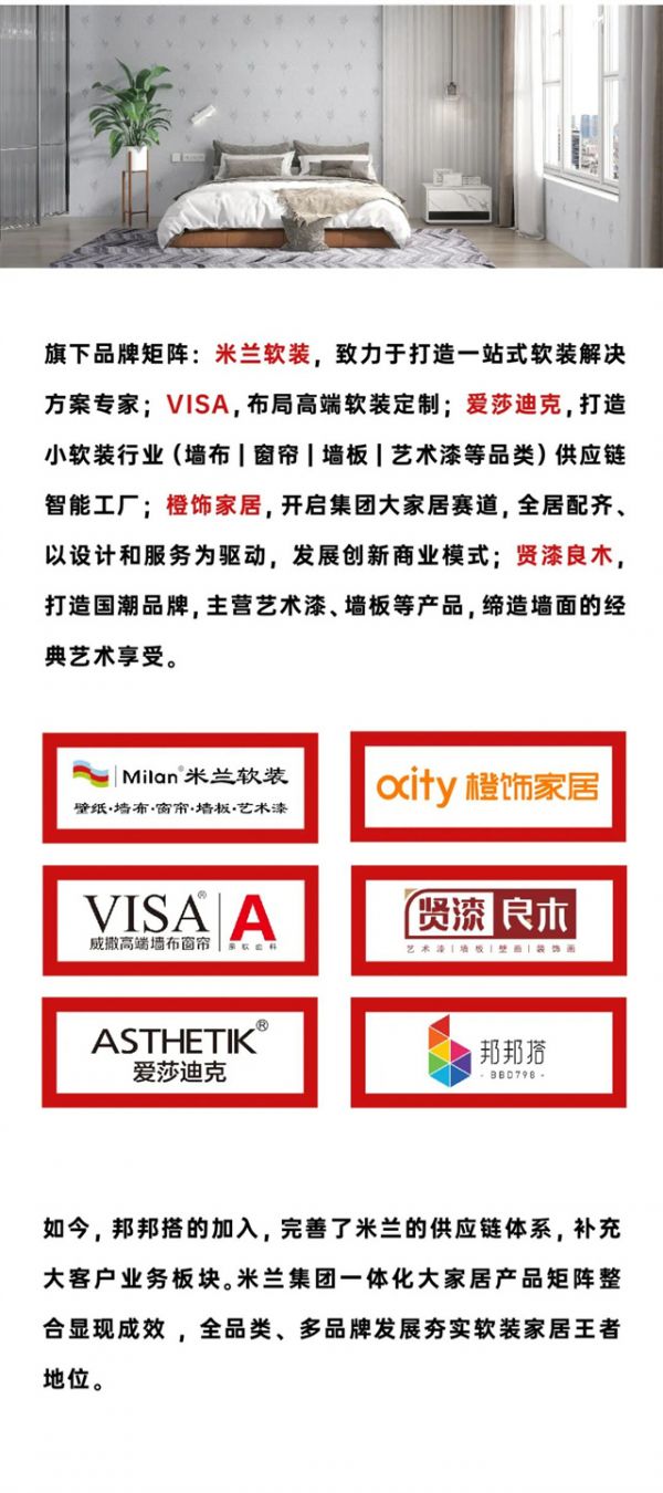【米兰壁纸墙布窗帘】米兰集团战略投资控股“邦邦搭”,合纵连横加快大家居战略布局