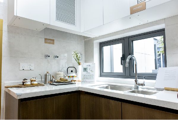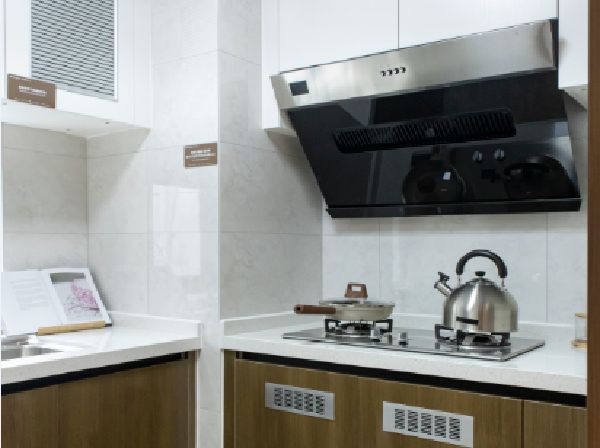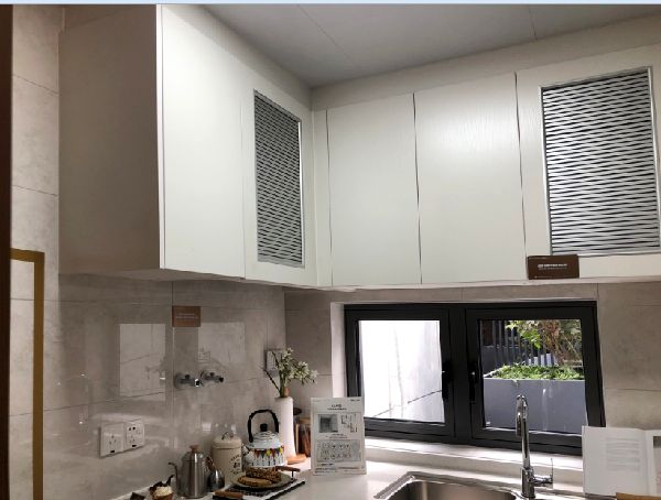 日常生活中,难免会存在一些安全隐患。考虑到此户型中,热水器及煤气表均放置在厨房里,所以在这一部分的橱柜柜门设计上,领尚特地采用了百叶窗柜门,相较密闭柜门更加通风透气,以防万一煤气泄漏,也能第一时间察觉。