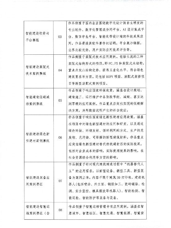 本届大赛以新发展理念为引领、以技术创新为驱动、以智能建造为重点,面向高质量发展需要,提炼数字转型、智能升级、融合创新案例。积极鼓励创新精神、更好培养应用人才、更深挖掘优秀作品,践行“引领行业发展、协同治理社会、精准服务企业”的宗旨。
