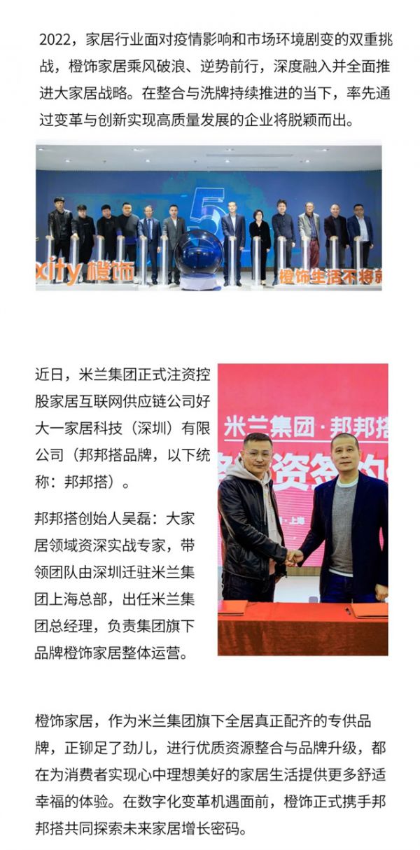 【米兰壁纸墙布窗帘】米兰集团要闻 | 橙饰携手“邦邦搭”,合纵连横加快大家居战略布局