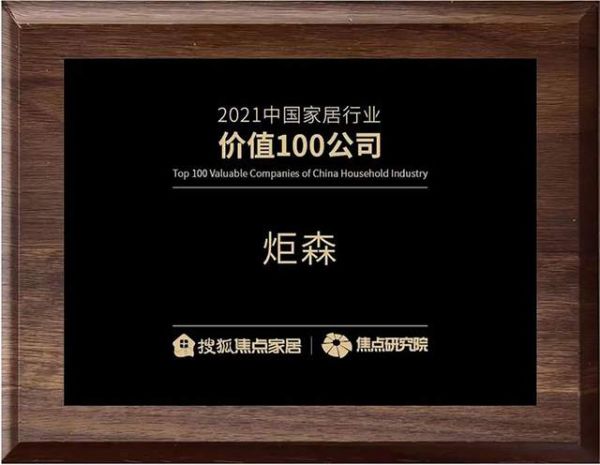 炬森五金实力加冕“2021中国家居行业价值100公司”