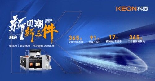 2022年初,集成灶十大品牌、厨电行业十大品牌科恩集成灶创新提出“厨房新国潮,科恩新三件”战略模式,重塑厨房格局,以烹、洗、饮为中心,集成智慧、延伸厨房、解放双手、节省空间,打造乐趣、便捷、健康的厨房新生活, 科恩品牌之声通过高铁传遍大江南北。