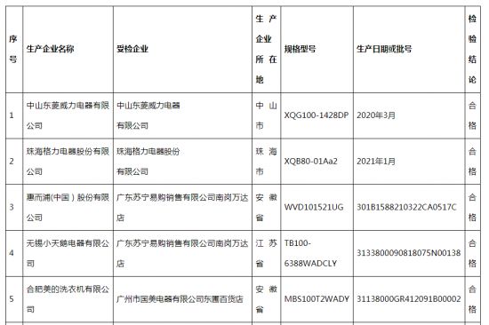 2022年3月7日,广东省市场监督管理局网站发布关于2021年能效标识省级计量专项监督抽查结果的通告(2022年第28号)。其中,抽查电动洗衣机30批次,经检验全部合格。具体信息如下:
