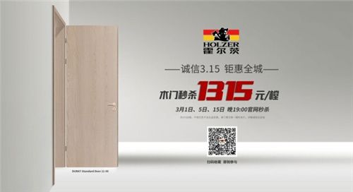 除了看得见摸得到的品质木门,霍尔茨用实打实的优惠力度和服务实现着对315品质月的承诺——3月1日、5日、15日每晚7点登陆霍尔茨官方网站(www.holzer.com.cn)即可参与秒杀活动,1315元将甄选木门带回家,更有新品花色和门型齐上阵,献上更多优惠。消费无忧,尽享优选好物,这个315,一切精彩尽在霍尔茨,期待与您的相遇!