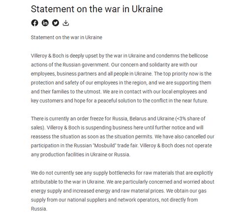 陶卫快讯 | 唯宝暂停俄白乌三国业务,占总收入比例不足3%