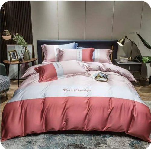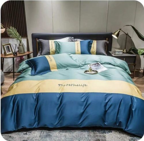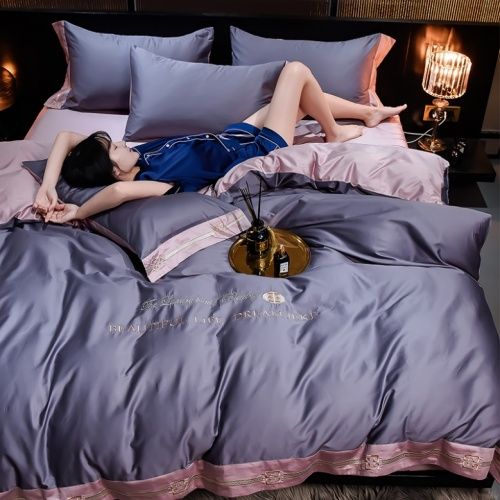 100支床品采用了优质新疆长绒棉,高支高密的面料泛着丝质一般的光泽,带来高级的睡眠享受。素色拼色设计的床品整体非常和谐,精致的刺绣锦上添花,简约而又时尚。