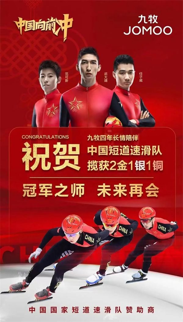 随着民族自信逐年高涨,民族品牌越来越受国人追捧。今年春节期间,九牧作为中国短道速滑队独家赞助商,让“中国向前冲”的口号响彻赛场,品牌曝光超过8亿。