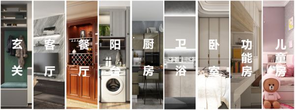 聚焦高端化、定制化、智能化、生态化趋势,九牧全屋定制覆盖玄关、客厅、厨房、餐厅、卧室、多功能房、书房、阳台、卫浴9大空间,为消费者提供一站式家装定制。